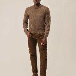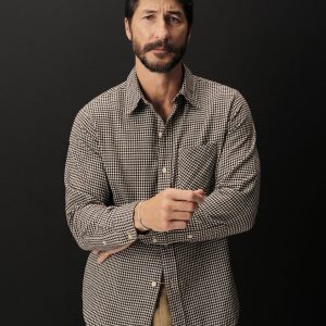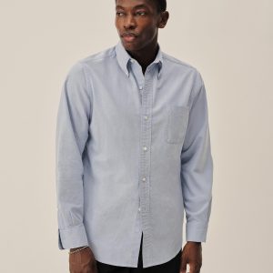 Classic fit short sleeve sweater tee with a straight hem. Yarn-dyed 16 gauge cotton jersey features light slub texture. Features double layer 1×1 ribbing at the collar and rib finishing at the cuffs and hem. Constructed with hand-linked seams for improved durability.