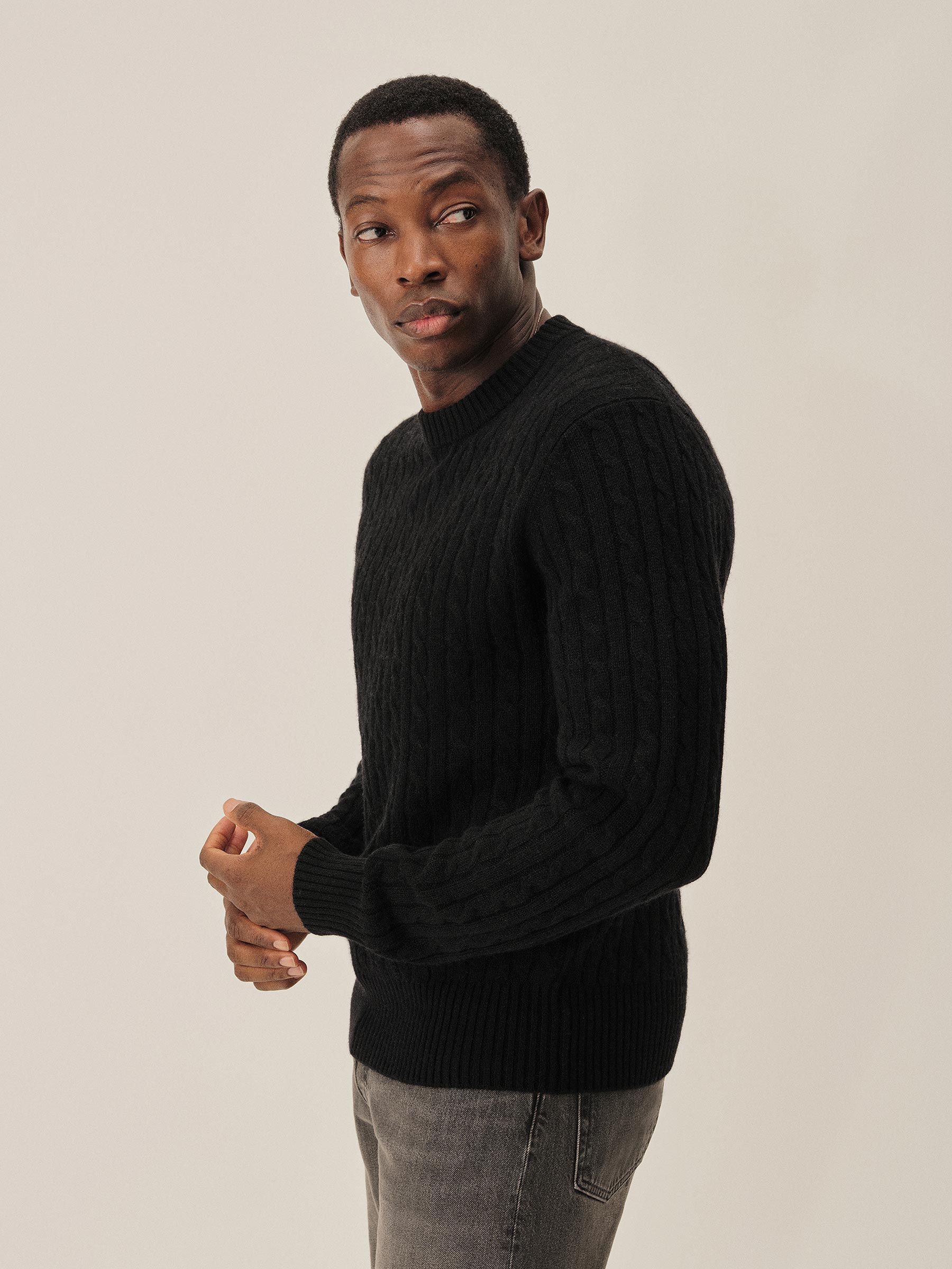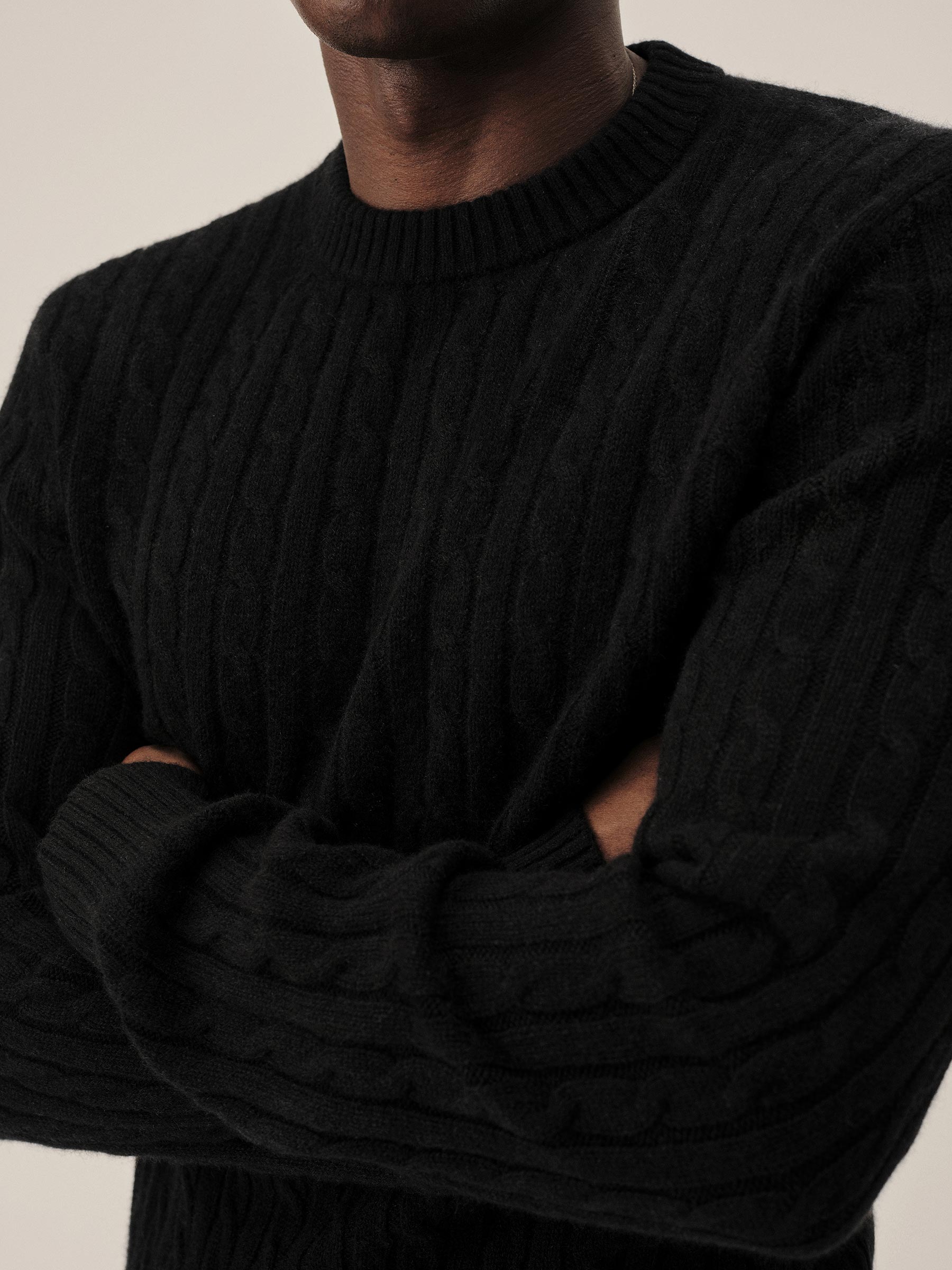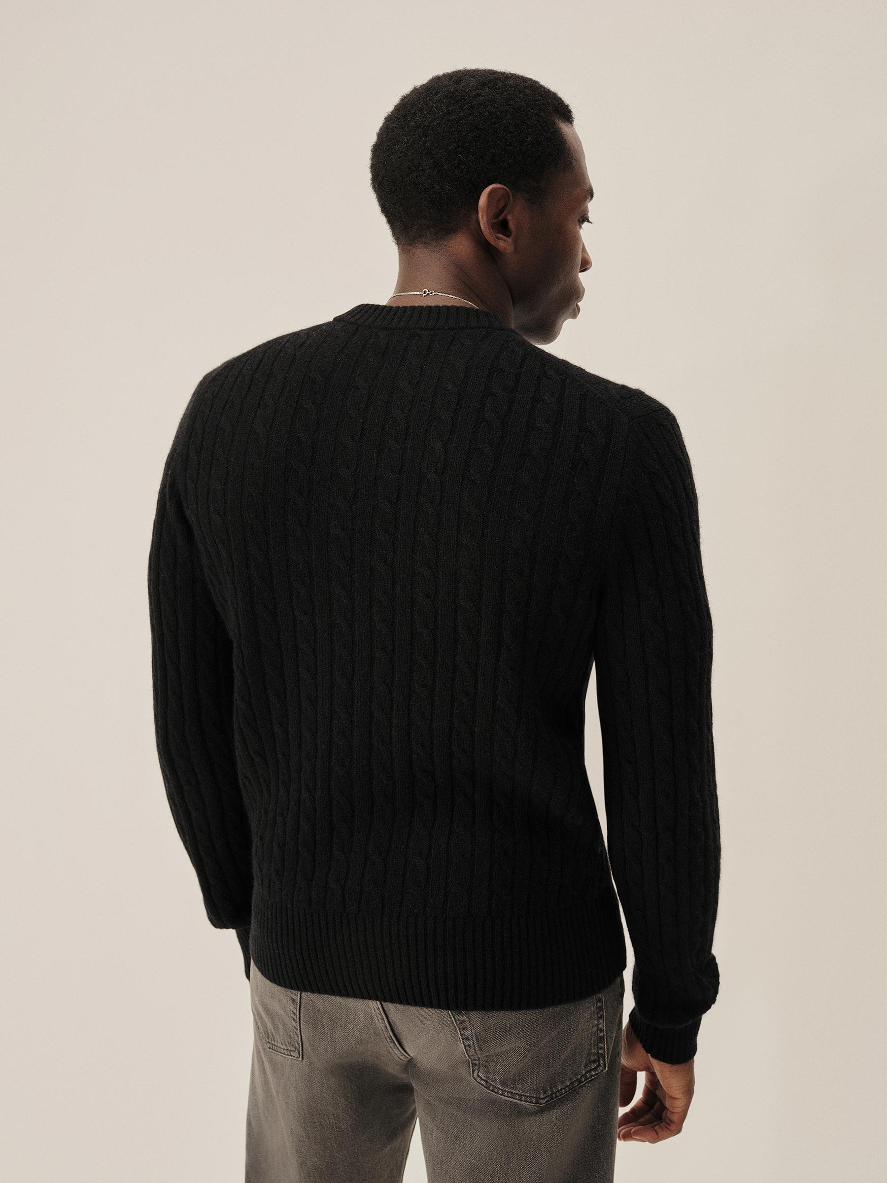 The California Cashmere Cable Crew is spun from 100% long-staple cashmere and knit in a refined 12-gauge cable pattern. Inspired by the casual poise of 1960s Ivy League sweaters, it’s finished with yarn-dyed ribbing at the neck, cuffs, and hem, and garment-rinsed for a soft, lived-in feel.