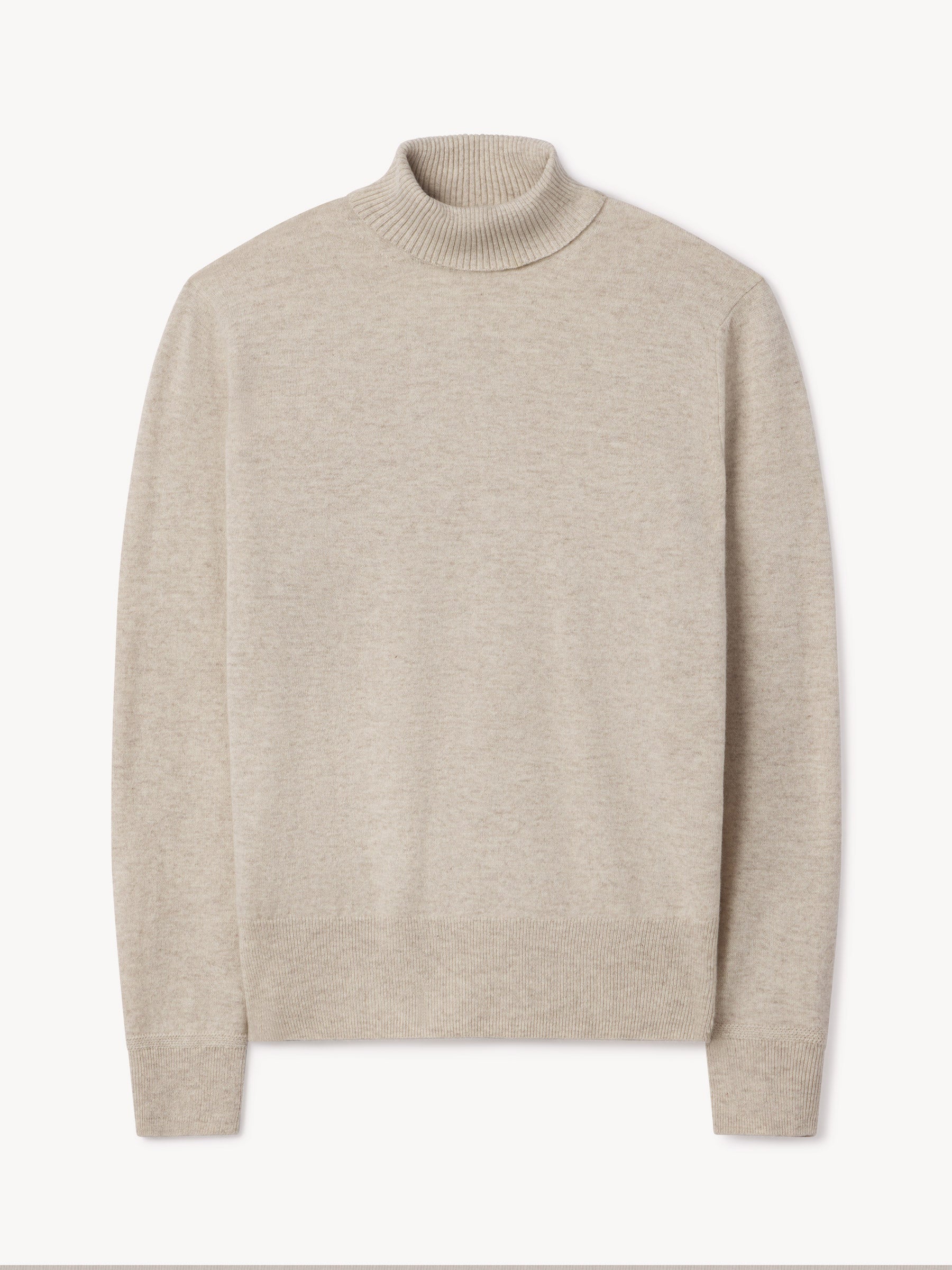 Classic turtleneck cut from our proprietary year-round featherweight cashmere. Fine-gauge and super soft. Ideal as a base-layer, or worn over a tee. Details include features subtle vintage racking, and tubular stitch details at the neck, cuffs, and hem.