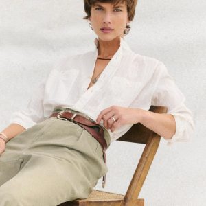 Relaxed-fit sheer shirt made from breathable 80-GSM cotton for a comfortable and airy feel. Featuring shirring at the shoulders and cuffs, a back yoke, and two chest pockets with button closures. Finished with mother of pearl buttons, button-through cuffs, and felled seams. Garment washed for a soft, worn-in feel.