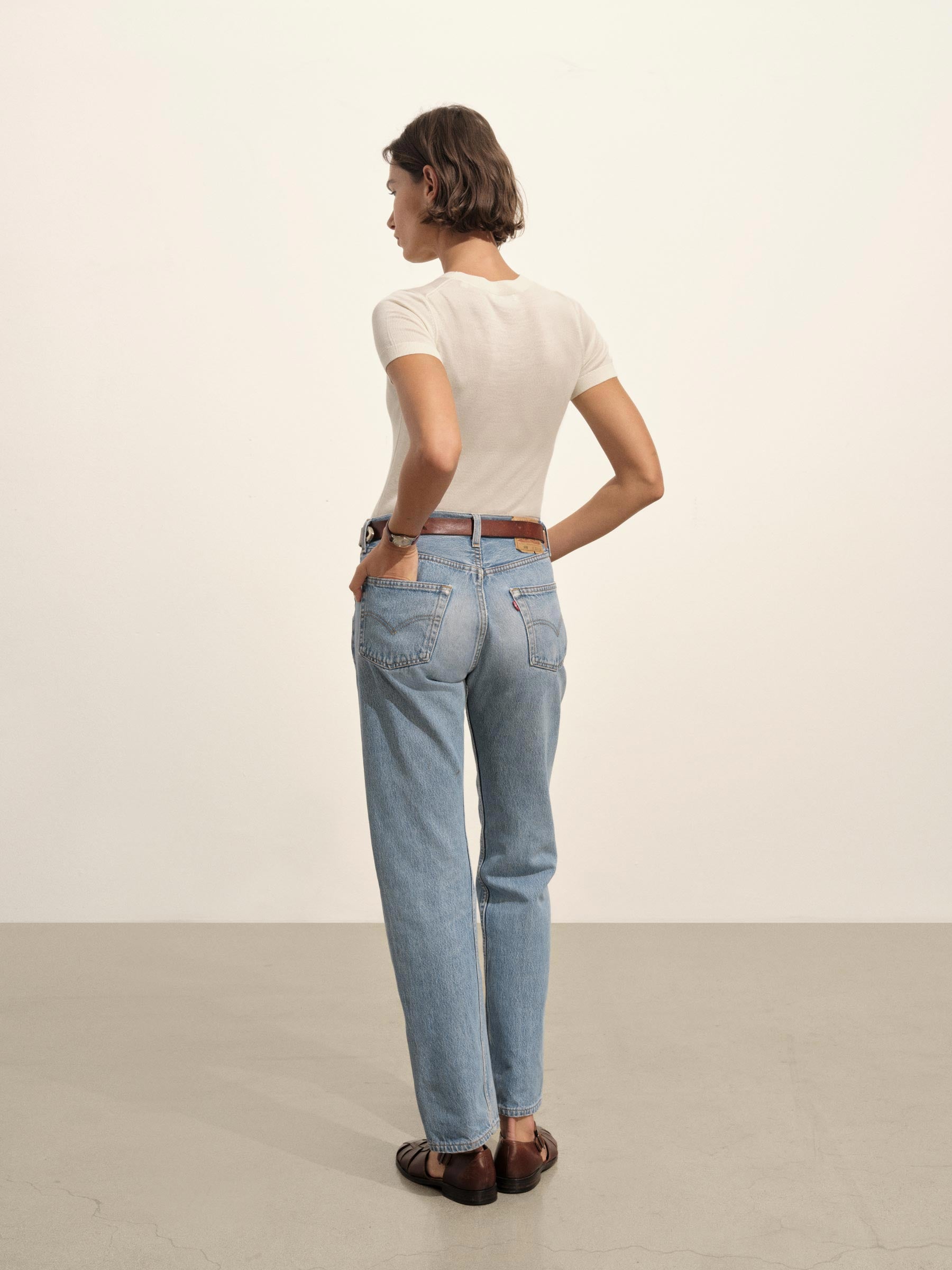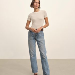 Crewneck sweater knit tee with a relaxed, slim fit. Spun from a yarn-dyed blend of merino wool, silk, and cashmere. Garment washed for added softness.