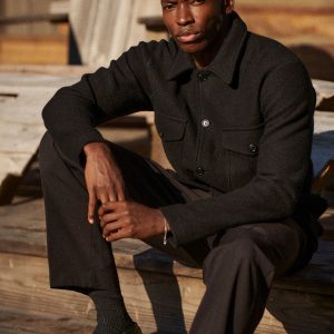 Classic fit field shirt in 340 GSM felted merino wool, twice boiled for improved insulation and durability. Details include patch-and-flap chest pockets and a button front closure. Constructed with hand-sewn facings and cover-stitching with flat seams for comfort.