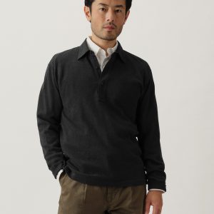 Classic fit long sleeve polo cut from yarn-dyed 310 GSM cotton jersey with the weight and durability of vintage rugby cloth. Details include a stepped hem with side seam vents, a three-button placket with shell buttons, and ribbing at the cuffs. Garment washed for a lived-in feel.