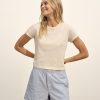 Military-inspired short sleeve henley, crafted from a superfine blend of new and recycled cotton with a subtle, textured rib. Featuring a three-button loop placket and sleeve cuffs. Finished with mother of pearl buttons and garment washed for a lived-in feel.