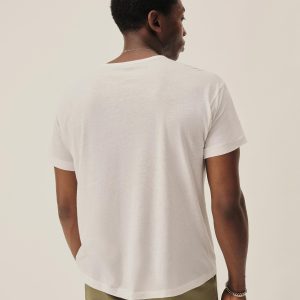 Crafted from a custom-spun, super fine 56 singles blended cotton-linen yarn, spun and knit exclusively in Japan. This fabric is designed to combine the smoothness of a premium yarn with the subtle texture of something more rugged. The result is a tee that’s smooth, cool, and light as air with a subtle silky hand feel. Finished with a rib-bound crewneck, blind hems at the sleeves and bottom, and overlocked seams.