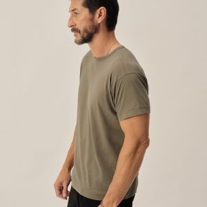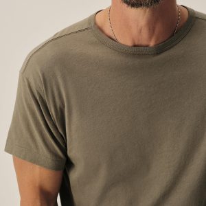 Crafted from a custom-spun, super fine 56 singles blended cotton-linen yarn, spun and knit exclusively in Japan. This fabric is designed to combine the smoothness of a premium yarn with the subtle texture of something more rugged. The result is a tee that’s smooth, cool, and light as air with a subtle silky hand feel. Finished with a rib-bound crewneck, blind hems at the sleeves and bottom, and overlocked seams.