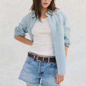 Summer-ready mid-rise cutoffs with an 8” inseam, crafted from 12.9 oz. indigo-dyed Japanese denim. Featuring metal rivet reinforcements at pockets and finished with a button fly. Garment-washed for a vintage look and feel.