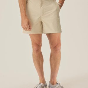 A classic-fit resort short made from sturdy nylon twill, cut with a slightly shorter inseam. Featuring a zipper fly, a button closure, waistband adjuster tabs with metal buckles, and a zippered back pocket.