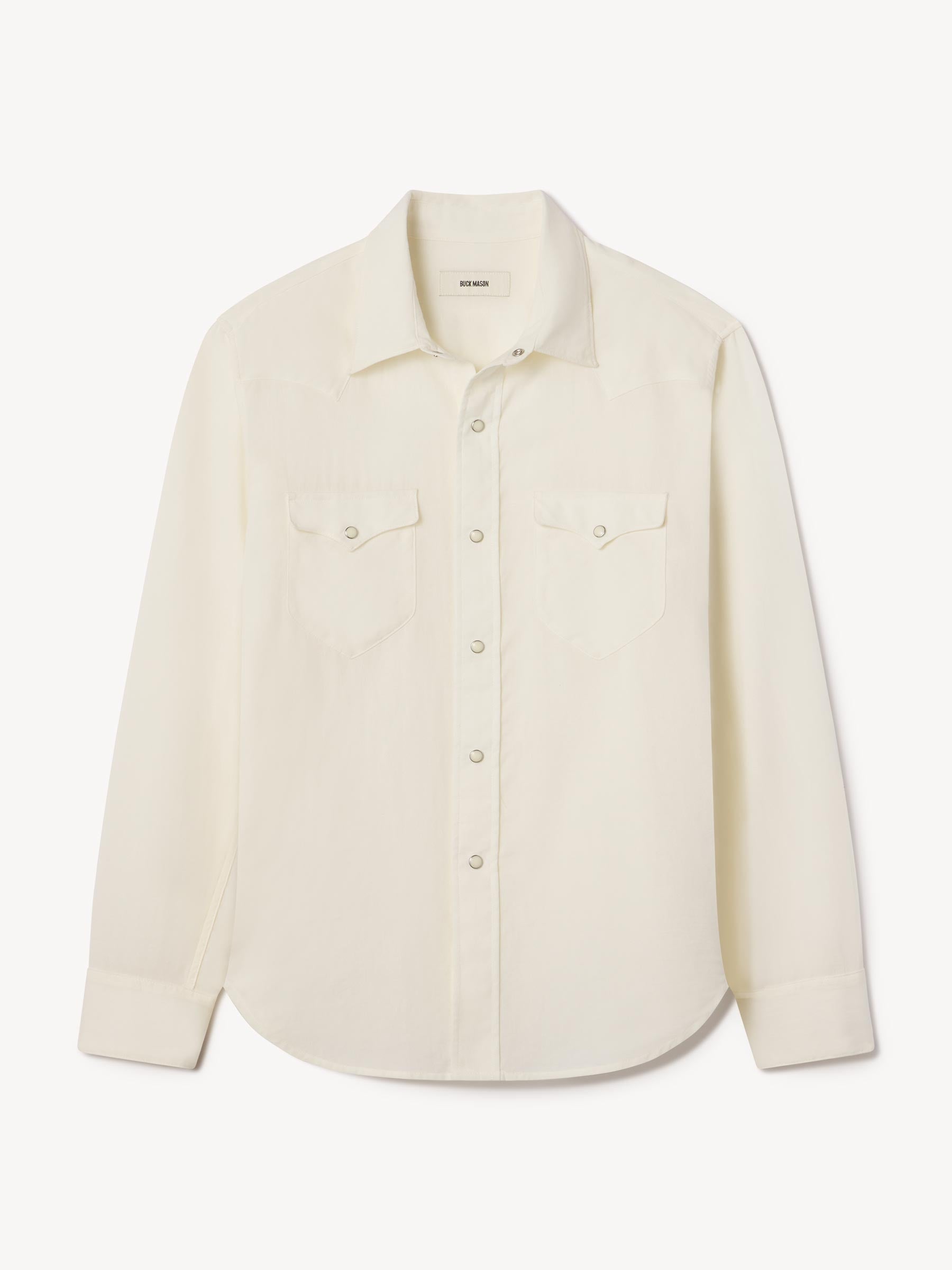 In the spirit of the ol’ Palomino, a classic fit western style shirt made from a springweight blend of cotton and wool, ideal for warm climates. The shirt has all the cowboy details like pearl snaps, a classic pointed yoke, five point pockets with pointed pocket flaps.