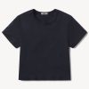 Boxy short sleeve crewneck tee with a straight hem. Cut from 120 GSM Supima cotton. Constructed with rib neck binding and double-needle cover-stitching at the hem. Garment washed for a lived-in feel.