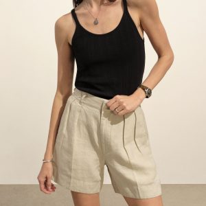 Taking inspiration from 1950s workwear shorts, a high-rise, pleated Bermuda short cut from 6.5 oz. linen with a subtle luster. Framed with a 6” inseam and a high-rise, featuring belt loops, on-seam pockets, back welt pockets, and adjustable tabs with pronged waistband buckles for a customizable fit. Finished with corozo buttons and a hook-and-bar stay button with a zipper-fly closure. Garment washed for a truly vintage look and feel.