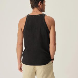 Inspired by the utilitarian design of midcentury military surplus, a distinctly textured tank featuring a 10×2 variegated rib layout. Made from 100% cotton with a 140 GSM weight that’s equally structured and breathable. Constructed with cover stitch detailing along the shoulder seams and bindings. Washed for a lived in feel.