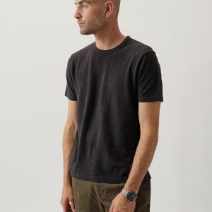 Classic fit short sleeve crewneck tee with our signature curved hem, cut from USA grown 145 GSM cotton with a light slub texture and sewn at BM Knitting Mills in Mohnton, PA. Constructed with self-neck binding and a flat stitch finish for comfort. Garment washed with enzymes and softener for a lived-in feel.