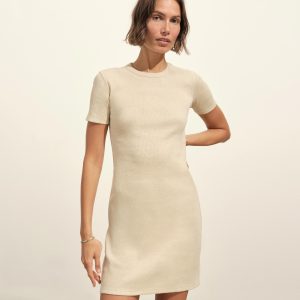 Short-sleeve mini dress with a 35” length in an 8 oz. blend of 90% cotton and 10% spandex, knit with a 2×2 ribbed structure for form-fitting stretch. Finished with 1×1 ribbing at the neckline and armholes. Garment washed for a soft feel.