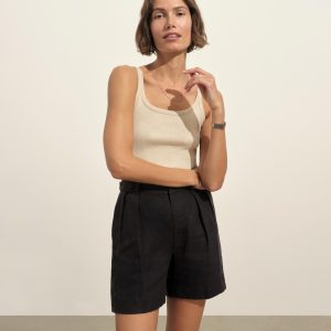 Slim fit ribbed scoop neck tank cut from 295 GSM stretch cotton that holds its shape. 2×2 rib structure—two rows of rib stitch, two rows of jersey stitch—is offset by contrast 1×1 rib at the neck. Constructed with coverstitching throughout and flatlock stitching at the side seams. Garment washed for a lived-in feel.
