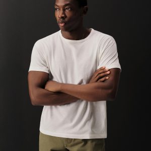 Classic fit short sleeve crewneck tee with a straight hem and patch chest pocket. Cut from a midweight cotton with tonal jacquard patterning. Garment washed for a lived-in feel.