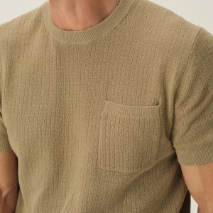 A classic fit tee in a fine knit drop-needle rib construction. Made from 12 gauge yarn-dyed hemp/cotton blend that wicks moisture and breathes easily. Chest pocket with ribbed opening. Finished with a 1×1 rib at collar, cuffs and waistband. A versatile summer layer inspired by vintage rib tees.